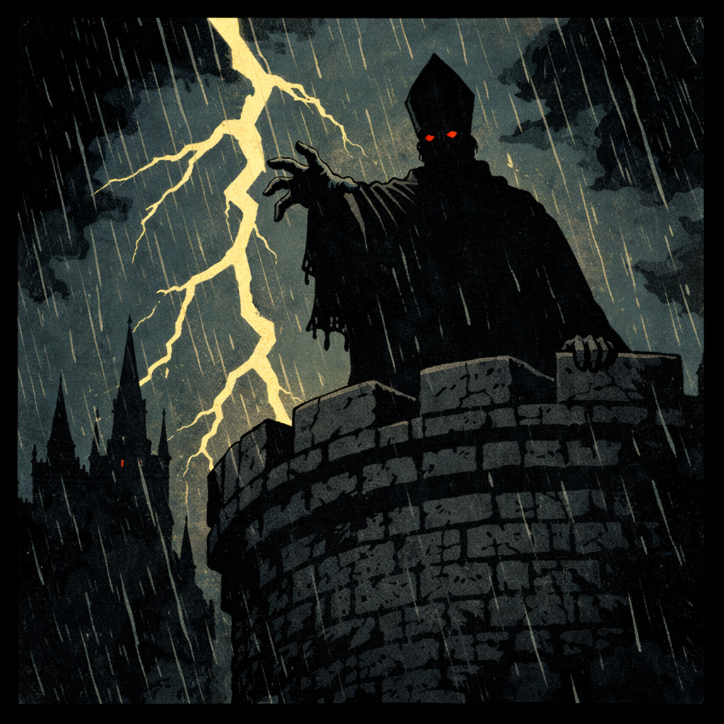 Un jour pourtant, des nouvelles troublantes arrivèrent d’Ankor Mortis, portées par un clerc escorté de guerriers en armure. Devant les villageois rassemblés, il annonça solennellement qu’un nouveau pouvoir régnait désormais dans la capitale : le Pontificus Maximus Esmond, et que le couple royal avait été renversé.